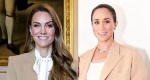 Her ensemble was very similar to Kate’s, while showcasing her own signature minimalist flair. She paired the sharply tailored blazer with wide-leg trousers, a crisp white top, and sleek Balenciaga heels. The Duchess of Sussex’s outfit embodied her distinctive brand of modern California sophistication – a style evolution she has …